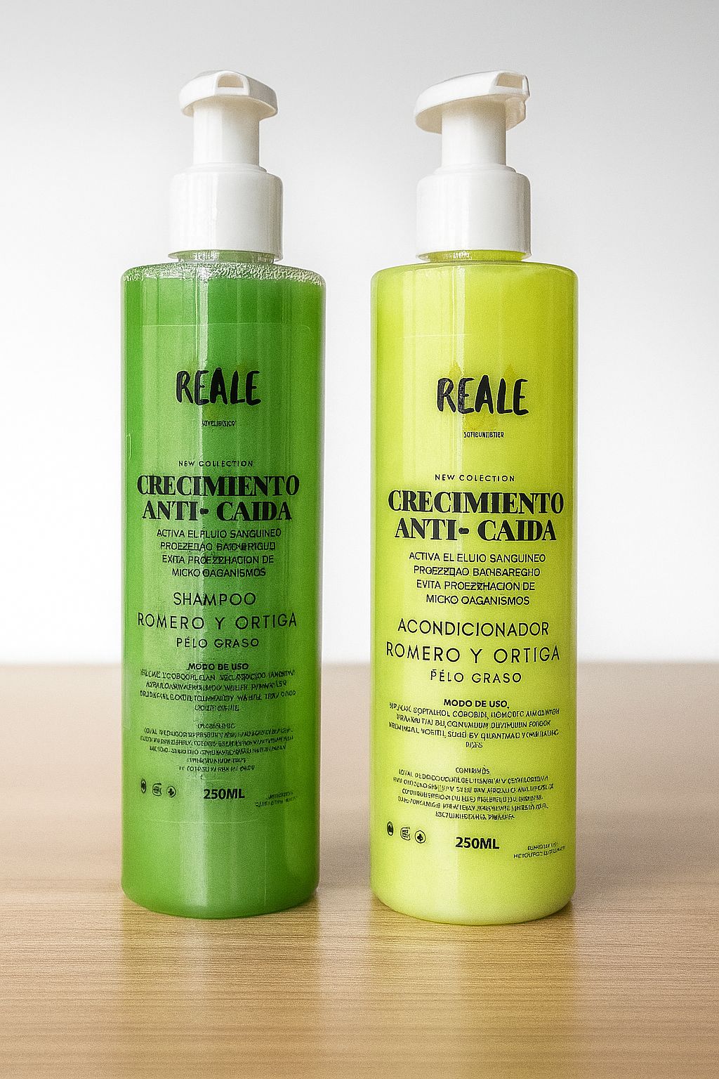 Esta combinación de productos , Shampoo y Acondicionador son los perfectos aliados para estimular el crecimiento del cabello, luminoso, fuerte y saludable. Además previene la caída , revitaliza y mejora el cabello graso, limpia las raíces en profundidad y por ende, reduce el exceso de grasa. Es fórmula natural de base vegana , betaína de coco, glicerina vegetal, keratina vegetal, extracto e infusión de Romero y Ortiga, infusión de Aloe Vera y vitaminas A, B4, B6 y C.